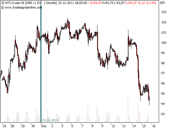 Gold steht hier stellvertretend für das gleichlaufende Silber und der nachfolgende Chart der Öl-Sorte WTI verläuft ähnlich wie die Nordseesorte Brent.