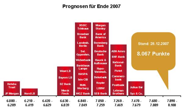 Das Bild setzte sich 2007 fort. Der Durchschnitt lag rund 1000 Punkte daneben, die beste Schätzung etwa 400 Punkte.