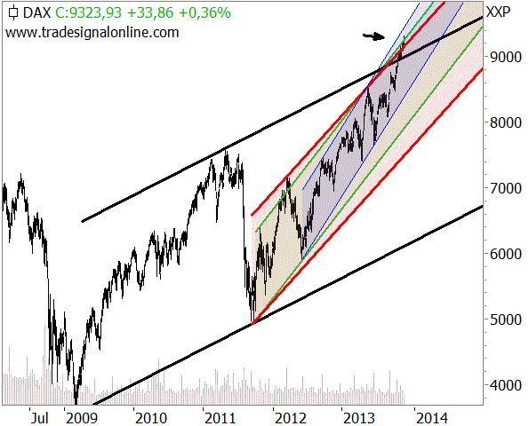 Trendbeschleunigung beim DAX. Der DAX ist nun, ähnlich wie der S&P500 zuvor, aus den wesentlichen Aufwärtstrends nach oben ausgebrochen.