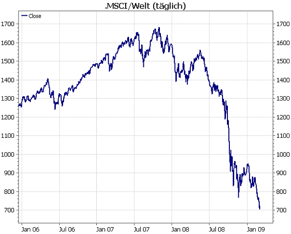 Jetzt hat die Weltbank vor einerglobalen Rezession in 2009 gewarnt und bestätigt damit sozusagendie „Prognose“ der Börsen. So soll die globaleWirtschaft zum ersten Mal seit dem zweiten Weltkrieg schrumpfen. DerWelthandel soll sogar den stärksten Rückgang seit 80 Jahrenverzeichnen.