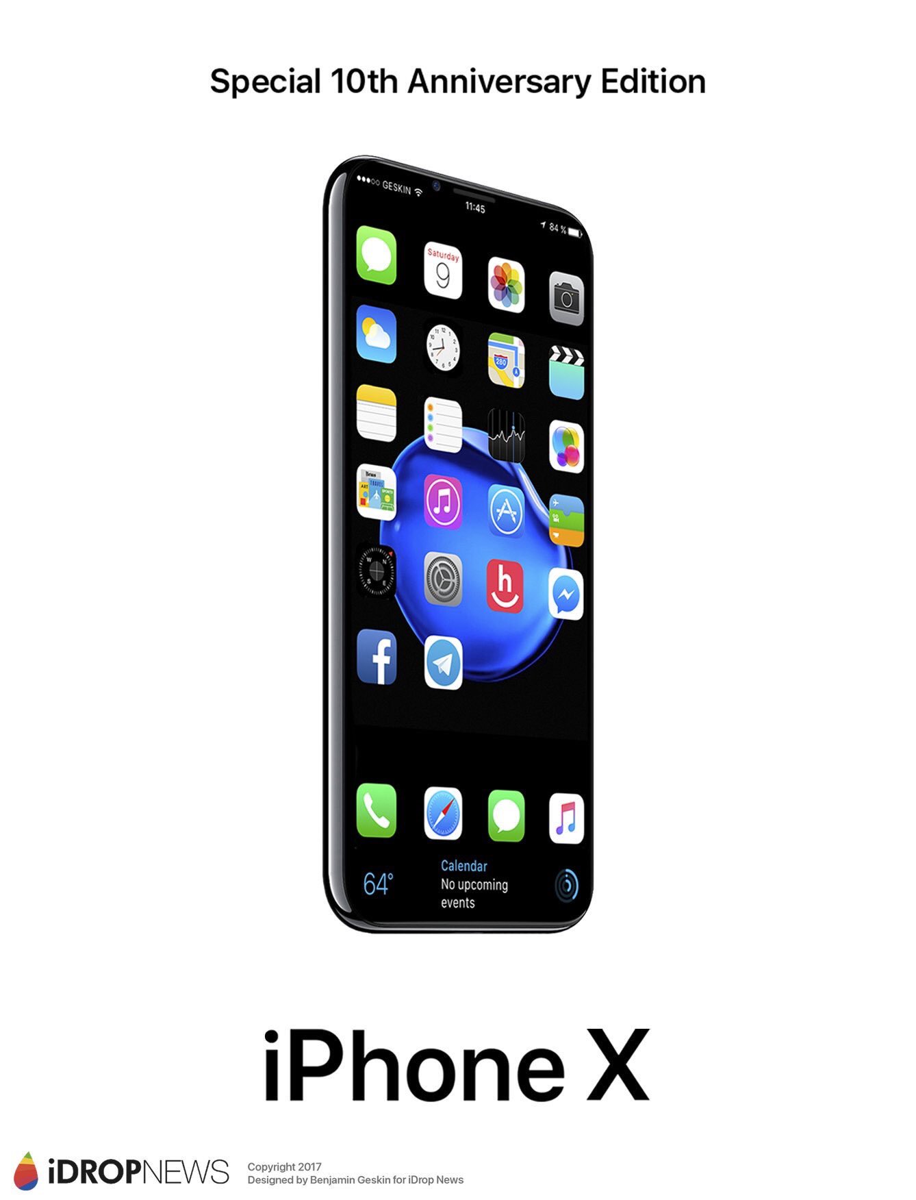 Das nächste iPhone würde demnach ein randloses „Edge-to-Edge“-OLED-Display besitzen, wie das erste iPhone aus dem Jahr 2007 von einem geschwungenen Stahlrahmen eingefasst wird und die Dualkamera nunmehr vertikal angeordnet werden. In einem späteren Tweet spekulierte Geskins dann darüber, dass der Stahlrahmen auch schwarz eingefärbt werden könnte