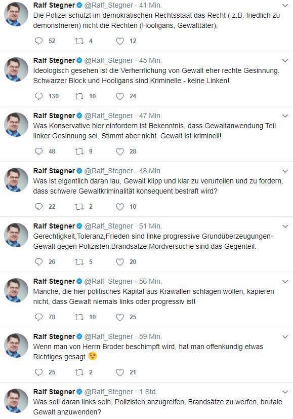 Ralph Stegner z.B. scheint nach der Wahlschlappe in seinem Bundesland hinreichend Zeit zu haben, in Tastatur zu greifen und in Trump'scher Manier seine Statements coram publico zu verteilen, doch auch das kann Pöbel-Ralle nicht.